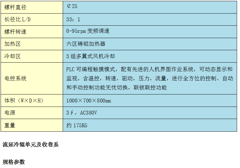 本機主要由主驅動電機、傳動裝置、擠出裝置、加料斗、電控系統(tǒng)、流延模頭、兩輥壓延等組成.